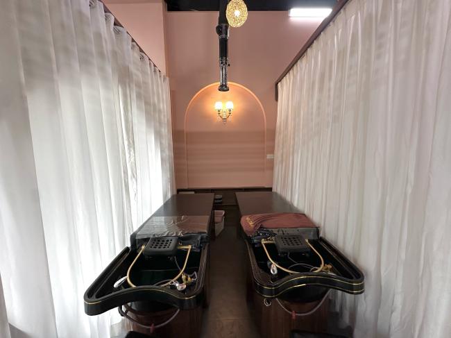 자연 치료 헤어 세척: 머리와 두피를 특별하게 관리하며, 머리, 어깨, 목, 등을 마사지하고 천연 허브 샴푸(레몬그라스, 사탕수수, 자몽 껍질, 계피 등)를 사용하여 두피와 머리를 청결하게 유지하는 서비스입니다.